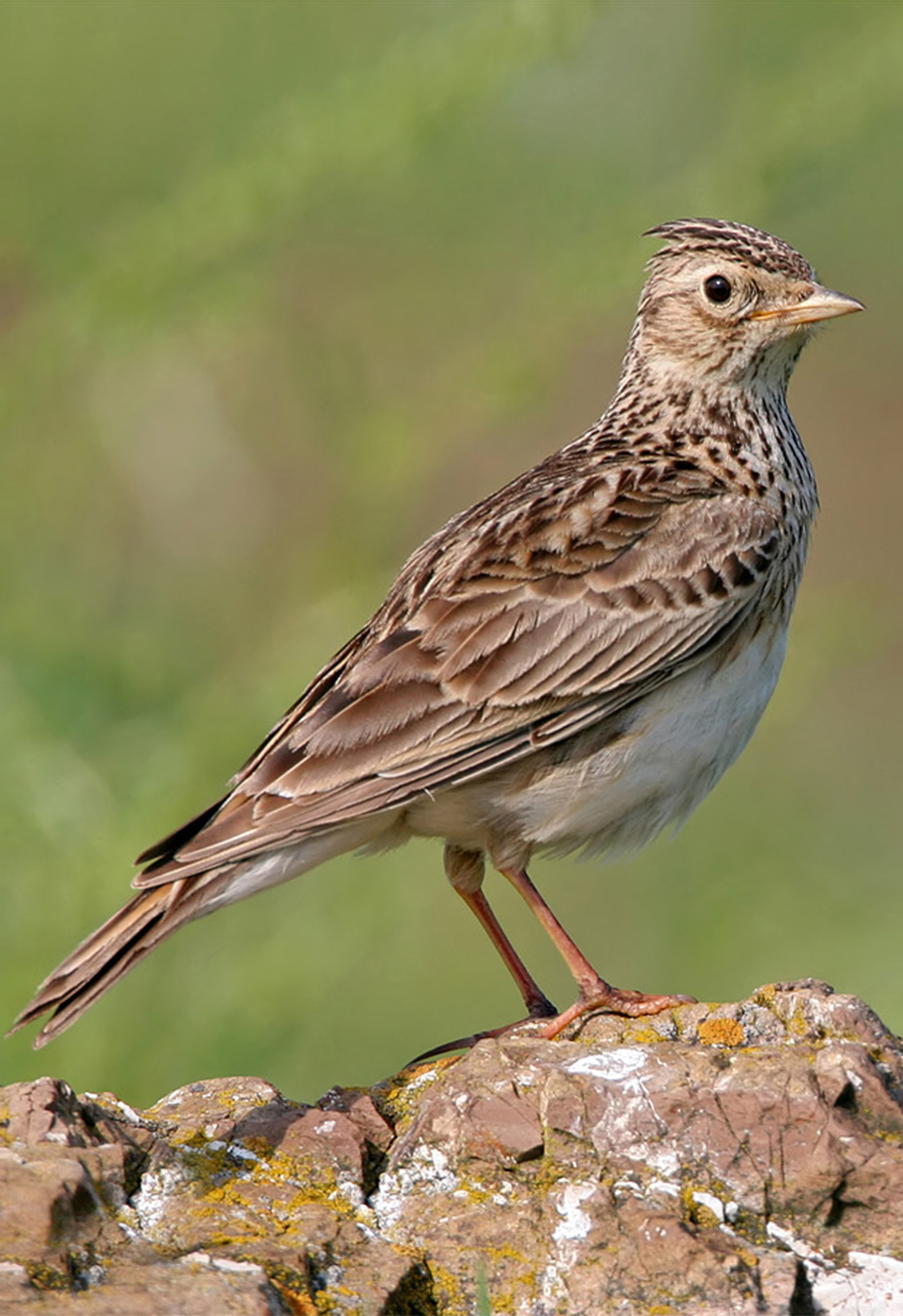 Die Feldlerche hat seit den 1980ern teilweise dramatische Bestandsverluste erlitten, sodass sich ihr Bestand in Deutschland bis heute halbiert hat. Noch ist sie ein typischer Feldvogel und daher recht bekannt. Sie bevorzugt offene Lebensräume mit abwechslungsreicher Vegetation. Ihr Gefieder ist überwiegend braun, und das Männchen besitzt eine kurze, stumpfe Federhaube, die es aufstellen oder anlegen kann.